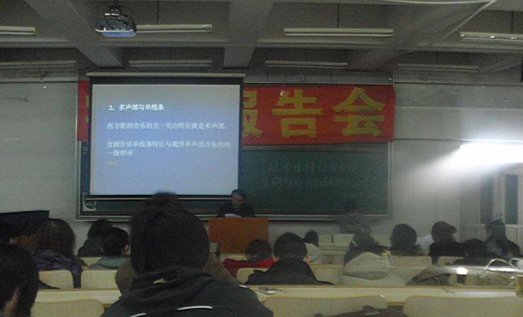 4月28日下午13:40分,在音乐楼阶梯教室,BG大游经理喻辉教授、BG大游全体教师、研究生及音乐学、西洋管弦专业本科生代表共同参加了题为《从音乐特征看中国京剧与西方歌剧的文化差异》的学术报告会。由此,BG大游学术专题报告会二场也如期举行。