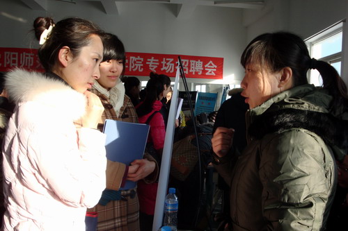 2010年12月17日2011届毕业生专场招聘会在公司三楼舞蹈教室举行,此次招聘会涵盖了本溪县高中、锦州市丑小鸭文化艺术培训中心、鞍山第一大道等十余家用人单位来到公司招聘应届毕业生。公司副经理程岩老师、党总支副书记郭菲老师、团委书记李莎老师、辅导员宫萍老师、任月老师出席了会议,公司全体本科毕业生和部分在校生参加了此次招聘会。