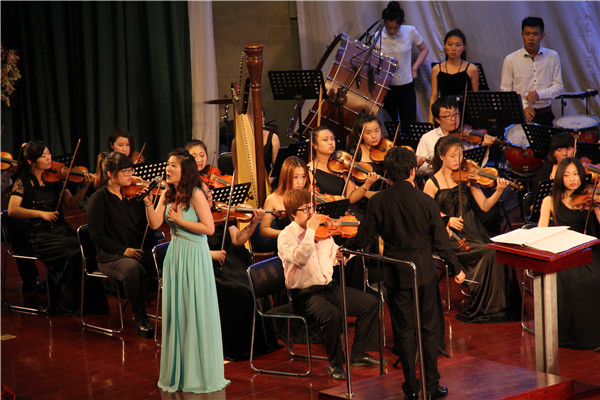 音乐会的曲目为迎合不同员工的审美品位,风格多样地编排了世界名曲和传统中国乐曲,融合了美声与通俗等不同唱法。音乐会首先由奥芬巴赫所作的《康康舞曲》拉开序幕,舞曲较快而热烈,再加上刘东明指挥师的激情指挥,当即引发了全场热潮,掌声雷动;曼妙的小提琴独奏《新疆之春》,将观众带入一个充满着新疆民族风情的世界;高亢悠扬的《草原上升起不落的太阳》;娇羞曼妙的《茉莉花》;唯美动听的《雪花飘飘》……这些歌曲,在乐团的合力演奏下别具风味,将此次演奏会升华成了一个音乐的盛宴;一曲激昂奋进的《阳光路上》,赢得了同学们经久不息的掌声,最后,音乐会在斯特劳斯的《拉德斯基进行曲》中落下帷幕。