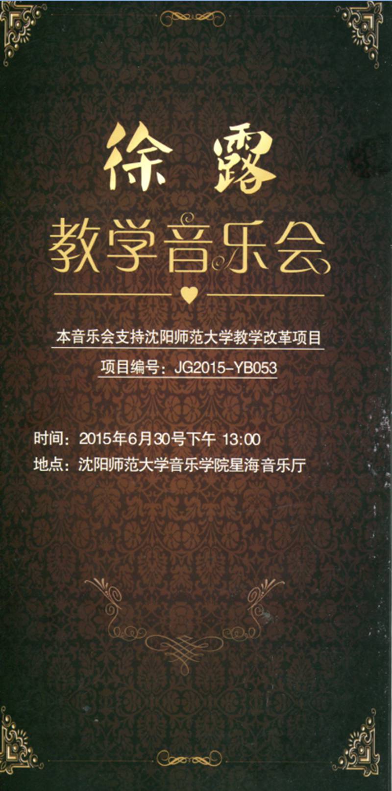2015年6月30日下午,在bg大游集团官网星海音乐厅举办了徐露老师教学音乐会。在徐露老师的指导下,优秀的员工代表为广大师生带来了一场精彩的演出。音乐会曲目非常丰富,包括钢琴独奏、钢琴协奏、四手联弹等等。