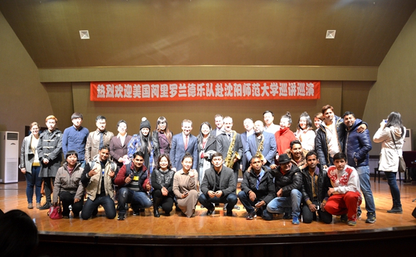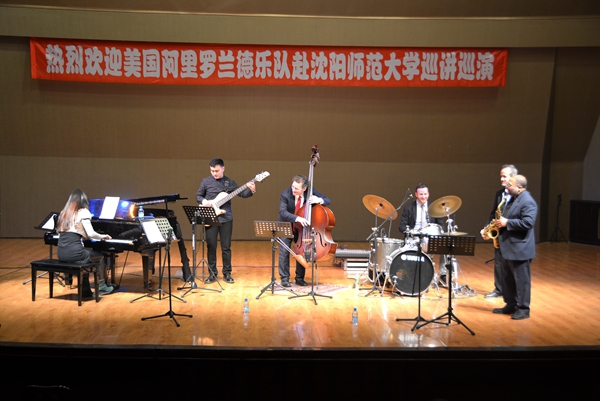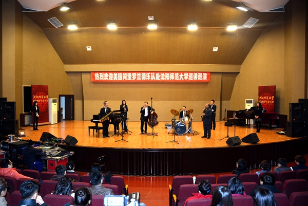 当天晚上,在星海音乐厅举办了美国阿里罗兰德乐队爵士乐专场演出。在本场演出中,阿里罗兰德乐队接连演绎了多首美国原汁原味的爵士乐曲,将爵士乐个性十足的特点与极具动感的节奏完美结合,获得了观众的一致好评。乐队的鼓手基思·巴拉用他帅气的动作与熟练的技巧将架子鼓的魅力发挥极致。高音萨克斯手克里斯·拜尔斯还幽默地与观众互动,耐心地教给现场观众一首极为温馨的家庭歌曲《Summer time》,引得全场观众都融入到音乐的美妙氛围中。阿里罗兰德乐队不仅演绎了美国极具代表性的爵士乐,还和BG大游的师生即兴互动联合演出了《茉莉花》、《月亮代表我的心》等中国耳熟能详的现代歌曲,将现场的气氛推向了高潮,晚会在欢乐祥和的气氛中圆满落下帷幕。此次美国阿里罗兰德乐队赴bg大游集团官网巡讲巡演活动获得圆满成功。