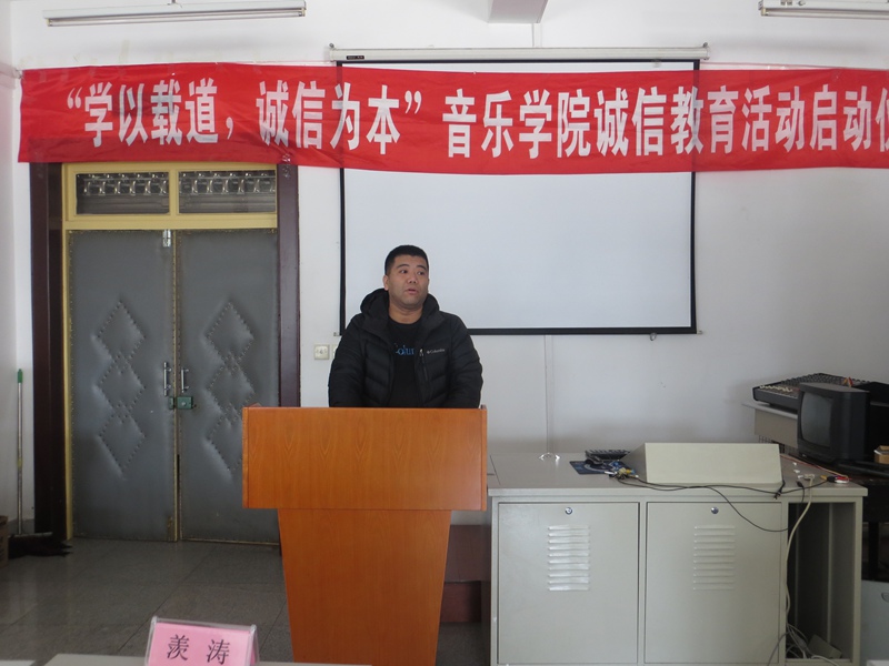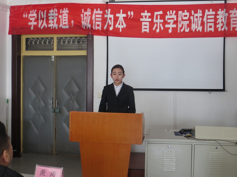 仪式上,BG大游员工自创的歌曲《诚信之歌》首先唱响,教师代表羡涛发言,鼓励同学们一定要做一个光明磊落的诚信人,希望同学们努力提高自身道德修养,端正考试态度,并预祝同学们期末考试取得优异的成绩,随后,2014级音乐表演专业班长金晴阳同学代表参加诚信考试的同学发言,表示要用良好的精神面貌和诚实守信的原则参加考试,让诚信常驻心中,用扎实的知识和求实的态度向自己、老师和家长交一份完美的答卷,2014级音乐表演专业团支书宋怡霖同学对全体同学发起了诚信考试的倡议,全体同学庄严宣誓,认真努力复习考试、自觉自律维护考试纪律拒绝作弊。