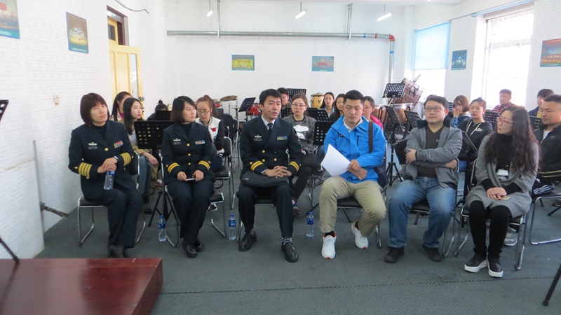 4月7日上午9点,在BG大游大排练教室,中国人民解放军海军军乐团2016届毕业生招聘宣讲会如期举行。海军军乐团政委张黎琴、业务处副处长高磊、业务处参谋陈娜、公司党总支副书记郭菲、管弦系主任张剑、辅导员任月及全体管弦专业员工参加招聘会。