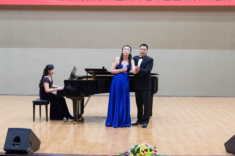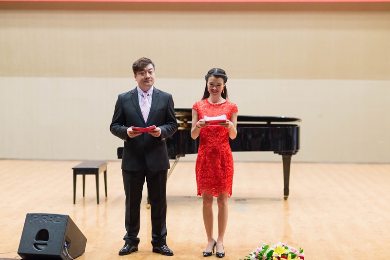 音乐会由公司员工带来的表演秀《BANG BANG BANG》拉开序幕;接下来由公司民声系教师张曼、胡晓杰带来的二重唱《芦花》,这是一首浪漫而热情的情歌,其优美的旋律打动了在场的每位观众;女高音独唱《你知道吗?好妈妈》选自歌剧《乡村骑士》,演唱者为公司声乐教师李丛慧;由公司民声系员工带来的具有浓郁中国古典韵味的歌舞表演《青花瓷》,将中国传统文化与现代流行音乐相结合,给人带来耳目一新的感受;二重唱《回到我们的山上》由公司两位青年声乐教师鄂薇、张宝国共同演唱,该曲选自著名歌剧《游吟诗人》;由公司民声系教师李月带来的女高音独唱《梅兰芳》,将传统戏曲唱腔与民族唱法相结合,展现了梅兰芳先生戏里戏外的人格魅力和为国奉献的伟大胸襟;由BG大游经理程岩与赵杰、李涛、谢聪、刘东明、薛静以及国家一级演员,辽宁交响乐团小提琴首席,BG大游外聘教授李秋老师共同带来的弦乐、木管、钢琴七重奏《梁祝》、《老蒯逗趣》将音乐会推向高潮,经典的旋律与诙谐幽默的音乐作品相互辉映,给观众留下深刻的印象;由公司青年教师刘东明指挥,bg大游集团官网青年交响乐团与bg大游集团官网雷锋合唱团联袂为大家带来的交响乐合唱《雕像》(选自清唱剧《雷锋》),将整场晚会再度推向高潮,合唱团演员们整齐的服装与交响乐团完美的演奏为到场的中美嘉宾献上了一场视听盛宴,音乐会结束后演员同嘉宾们共同合影留念。