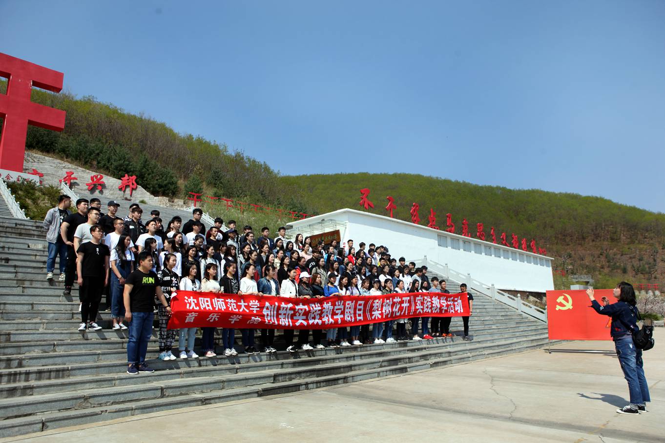 合唱团在干字碑前唱响《梨树花开》